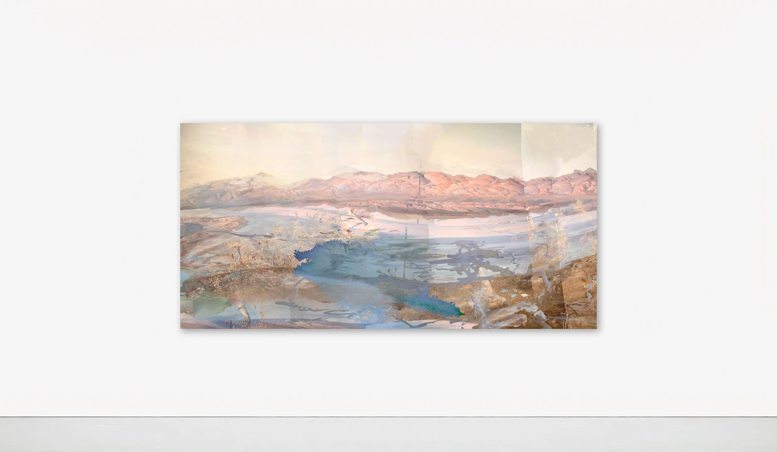 Cortright continues to redefine painting by merging software-based processes with a distinctly painterly sensibility. Her works—constructed from photographic fragments, digital brushstrokes, and layered compositing—evoke water, sky, and landscape while remaining unmistakably synthetic.